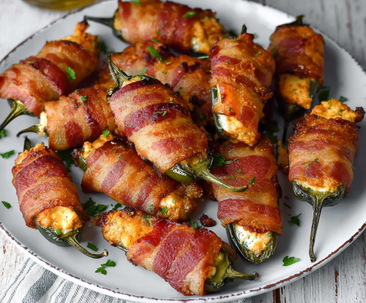 These bacon-wrapped jalapeño poppers are a spicy treat that everyone loves! Stuffed with cream cheese and wrapped in crispy bacon, they’re perfect for parties or game day.