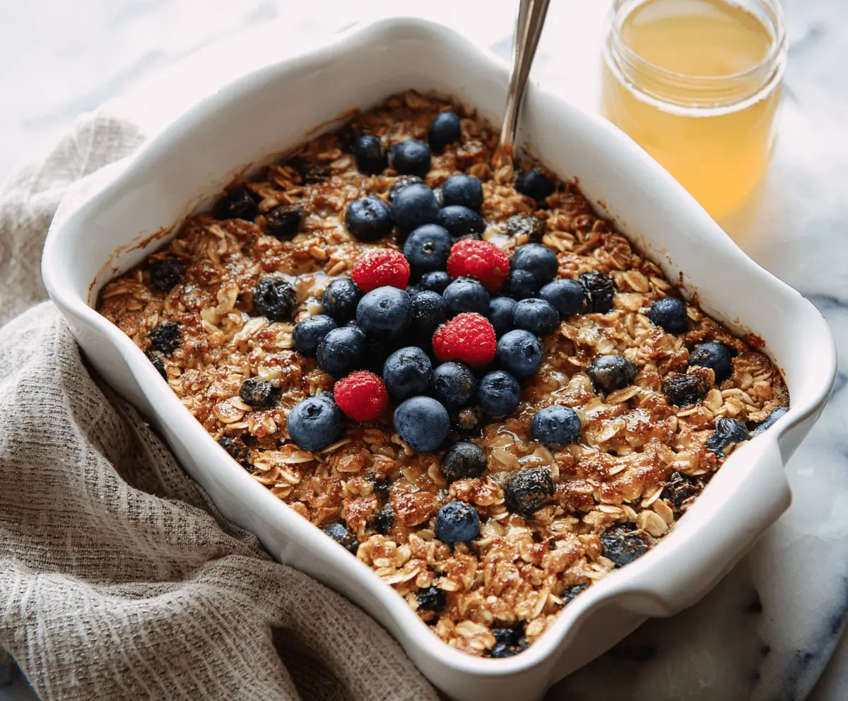 Start by preheating your oven to 350°F (175°C). This ensures that the oatmeal cooks evenly. While the oven warms, lightly grease an 8×8-inch baking dish to prevent sticking.