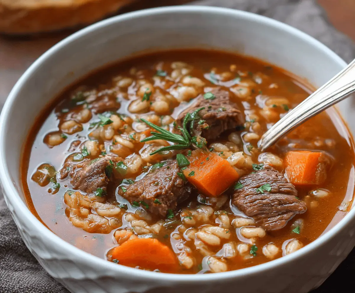 This hearty beef and barley soup is a warm hug in a bowl. Packed with tender beef, nutritious barley, and colorful veggies, it’s super filling and perfect for chilly days!