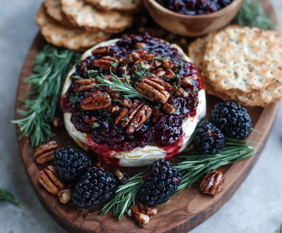Serve immediately with your favorite crackers or sliced baguette. Enjoy this warm, cheesy delight with the sweet-tart blackberry compote and crunchy pecans—it’s a treat for the senses!