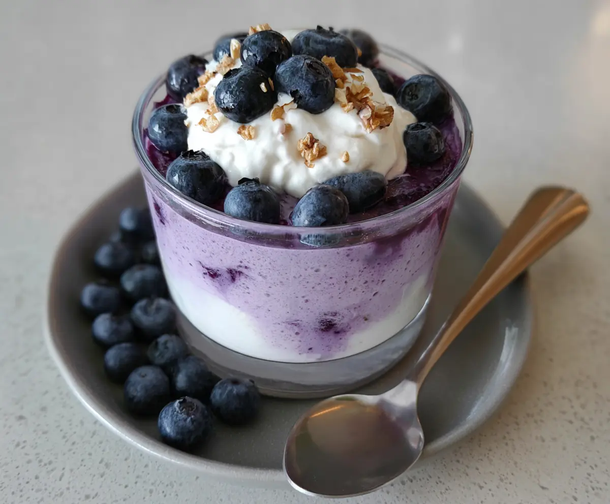 Dig into your chilled Blueberry Cottage Cheese Mousse and savor the deliciousness! Perfect for a light dessert or snack. Enjoy every creamy, berry-filled bite!