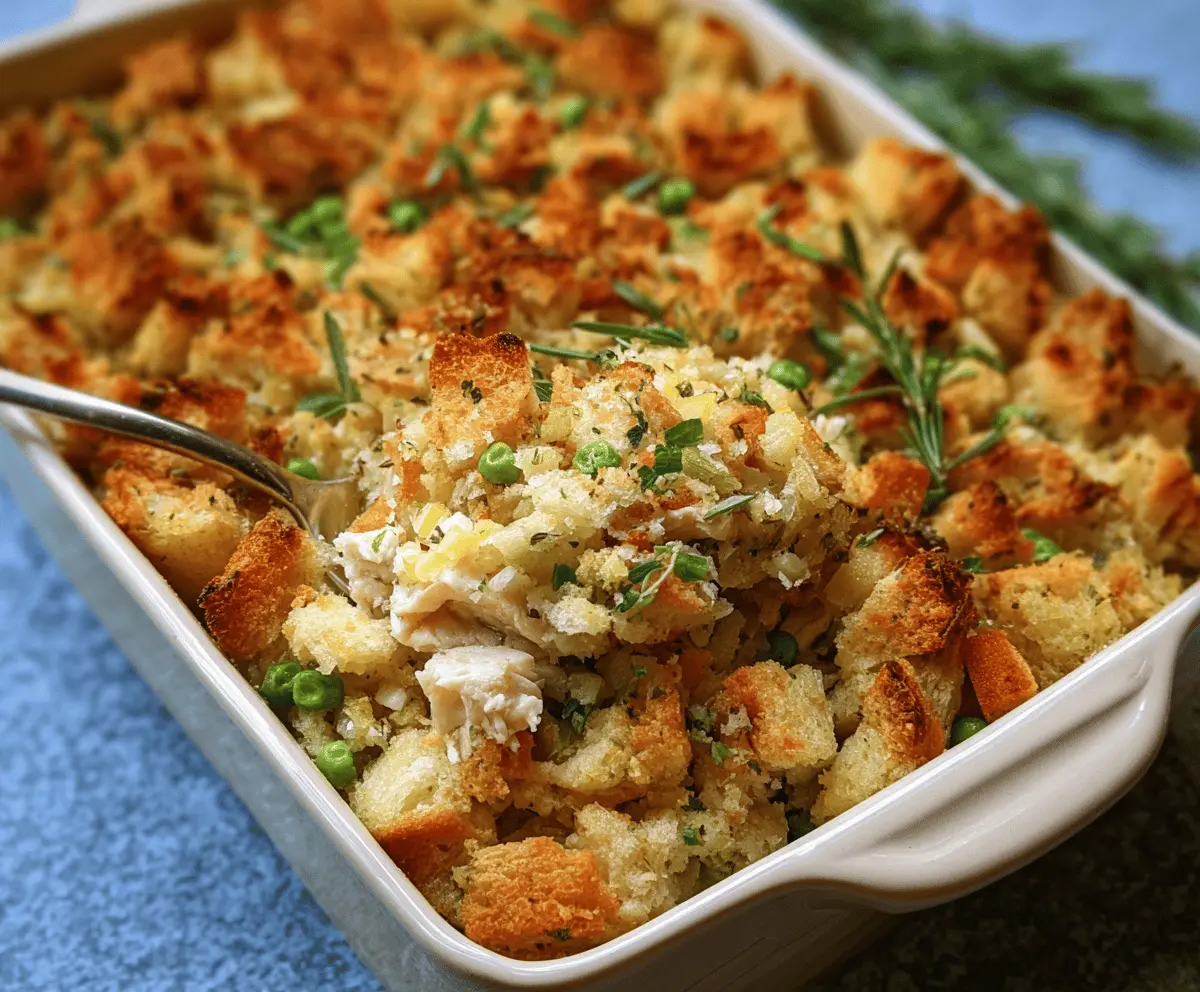 This Chicken & Stuffing Casserole is a warm and cozy dish that people adore! It has tender chicken layered with delicious stuffing, making it a perfect comfort meal.