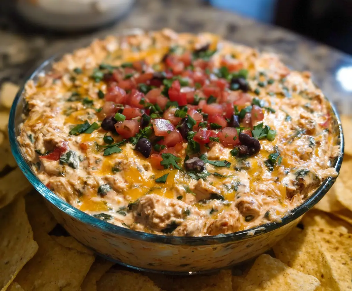 This Chicken Taco Dip is a fun and creamy dish packed with flavors. With layers of chicken, cheese, and spices, it’s perfect for a party or a cozy night in!