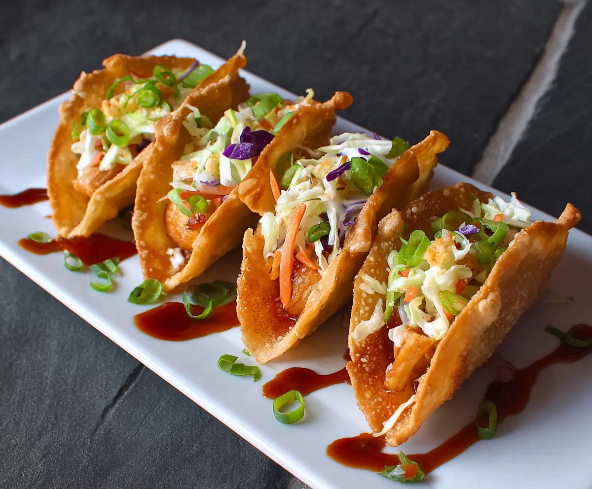 Chicken wonton tacos are a fun twist on traditional tacos! They feature crispy wonton wrappers filled with tender chicken and yummy toppings, making them a tasty treat.