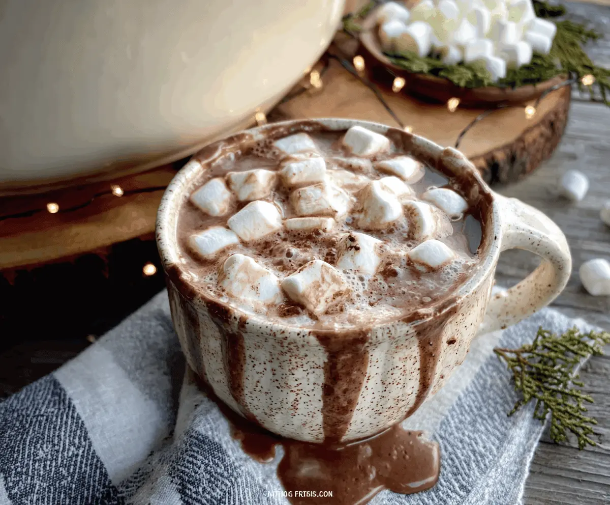 This delicious hot chocolate requires about 10 minutes of prep time and then a slow cooking time of 2 to 3 hours. Perfect to set up while you prepare for your Christmas Eve festivities!