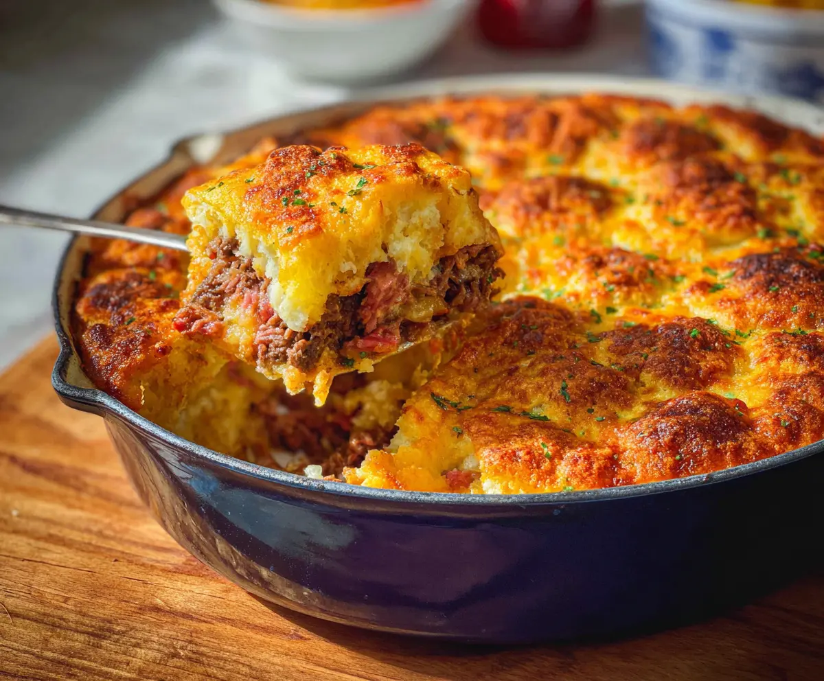 This corned beef casserole is a warm and hearty dish that’s perfect for a cozy dinner. With layers of tender corned beef, creamy potatoes, and cheesy goodness, it’s a real crowd-pleaser!
