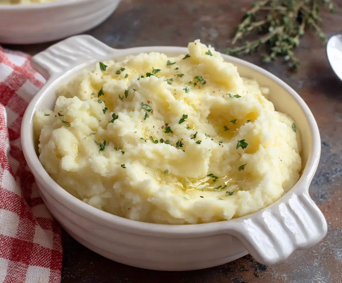 Creamy cottage cheese mashed potatoes served as a delicious side dish.