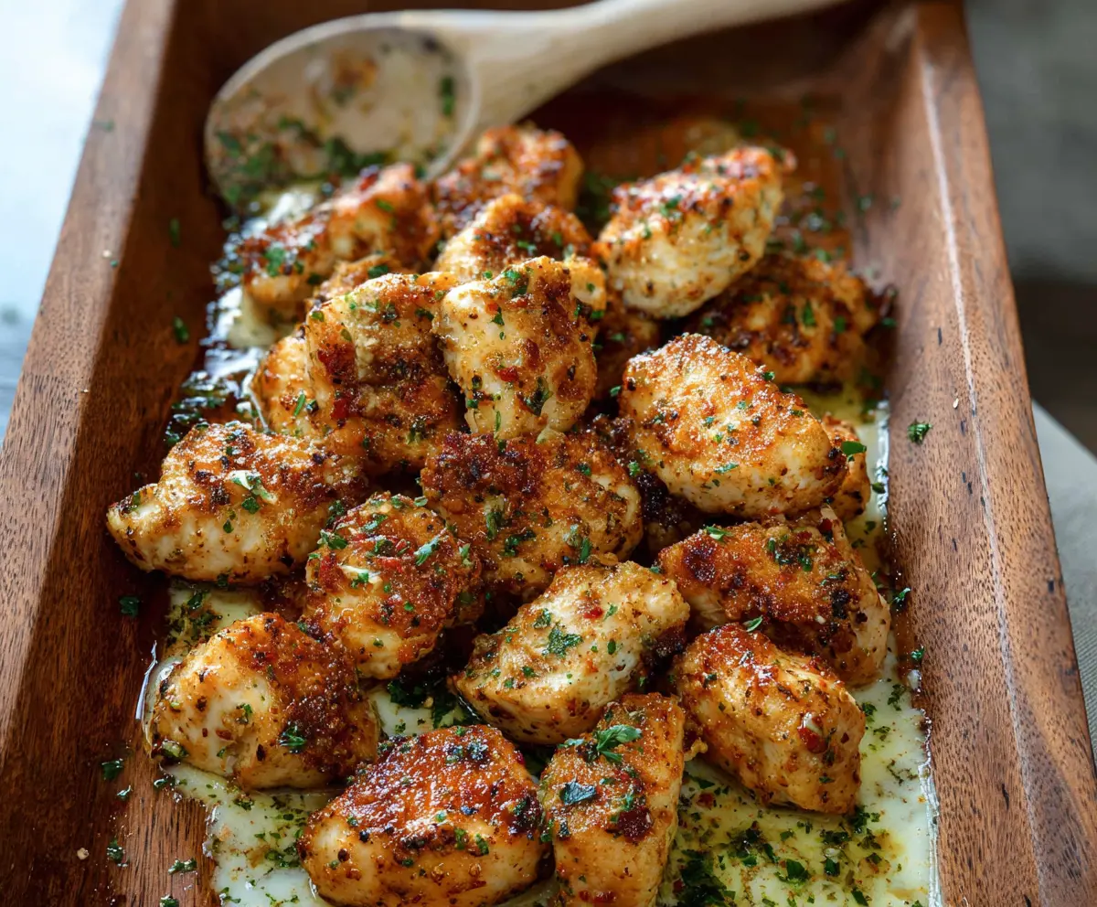 Yes, you can bake them! Preheat your oven to 400°F (200°C), toss the seasoned chicken bites in a little olive oil, and spread them on a baking sheet. Bake for about 15-20 minutes or until cooked through. Finish by tossing them in the butter and garlic mixture after baking.
