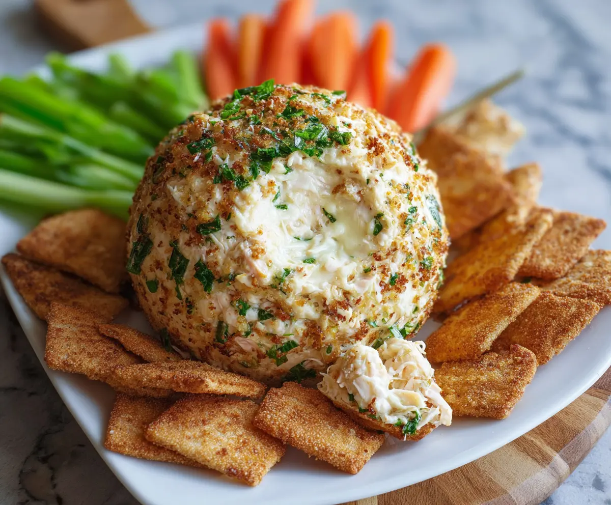 Delicious crab dip cheese ball with creamy cheese and fresh crab meat, perfect for parties and appetizers.