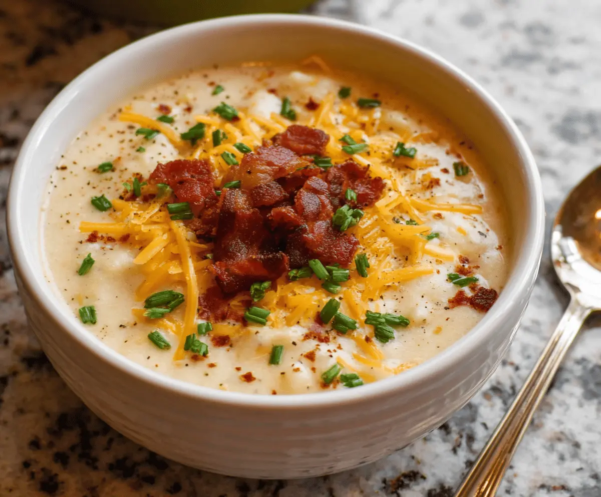 Your rich, creamy, cheesy potato soup is now ready to enjoy! It’s the perfect cozy meal for any occasion. Enjoy every spoonful!