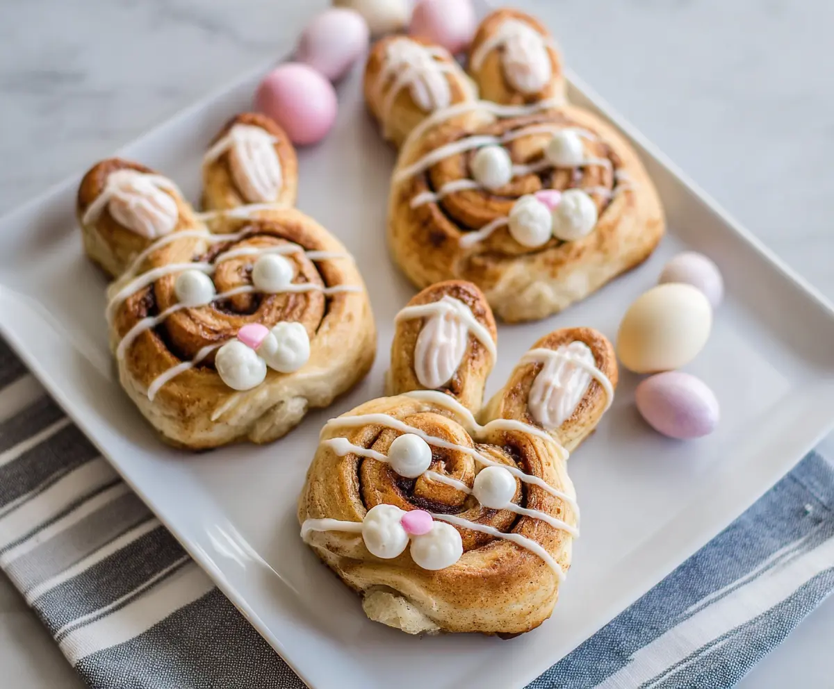 Serve your festive Easter Bunny Cinnamon Rolls warm, and enjoy this delightful treat with your family and friends!