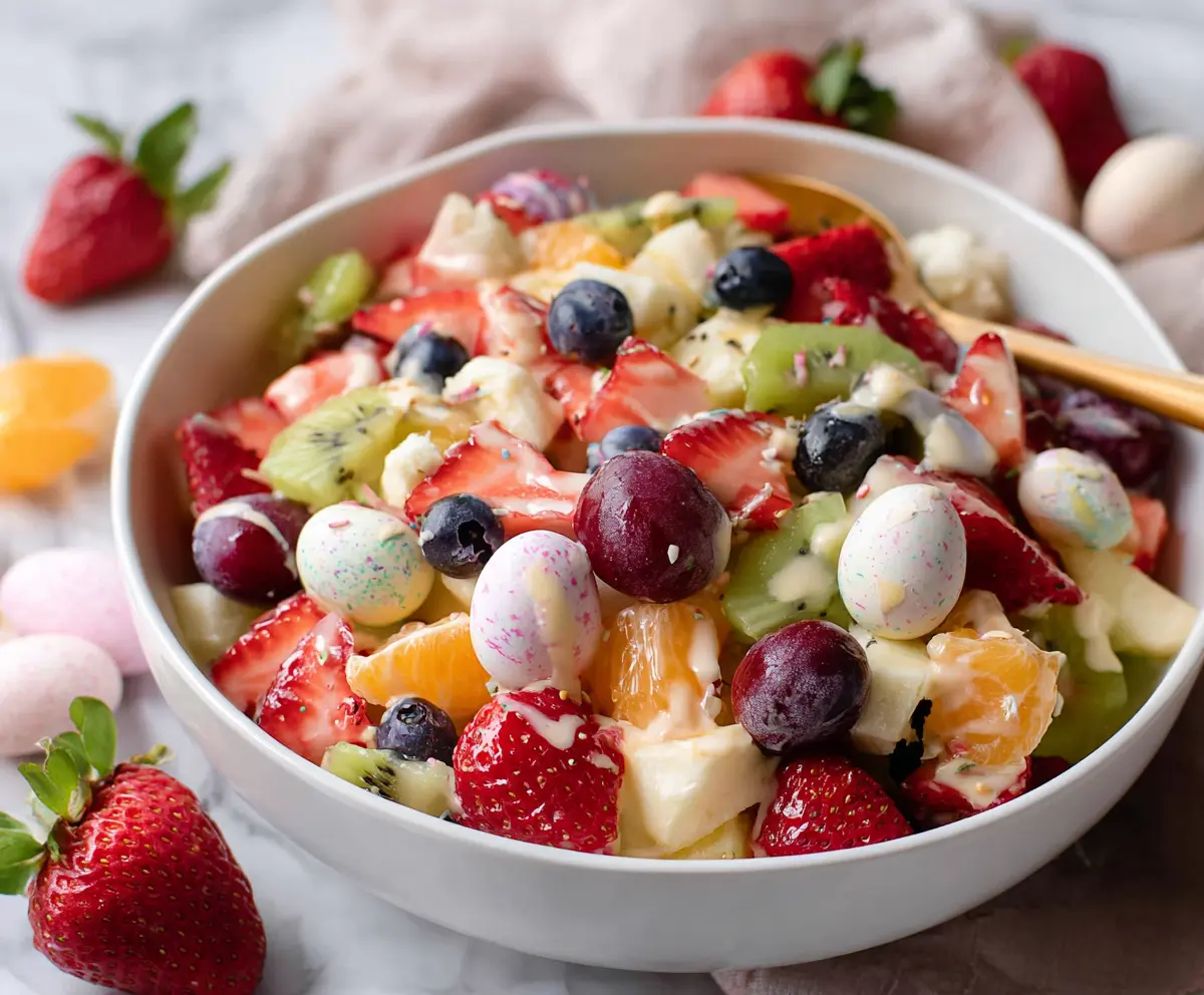 This delightful Easter Fruit Salad takes around 20 minutes to prepare and about 30 minutes to chill. So, in just under an hour, you can have a colorful and tasty fruit salad ready to enjoy!