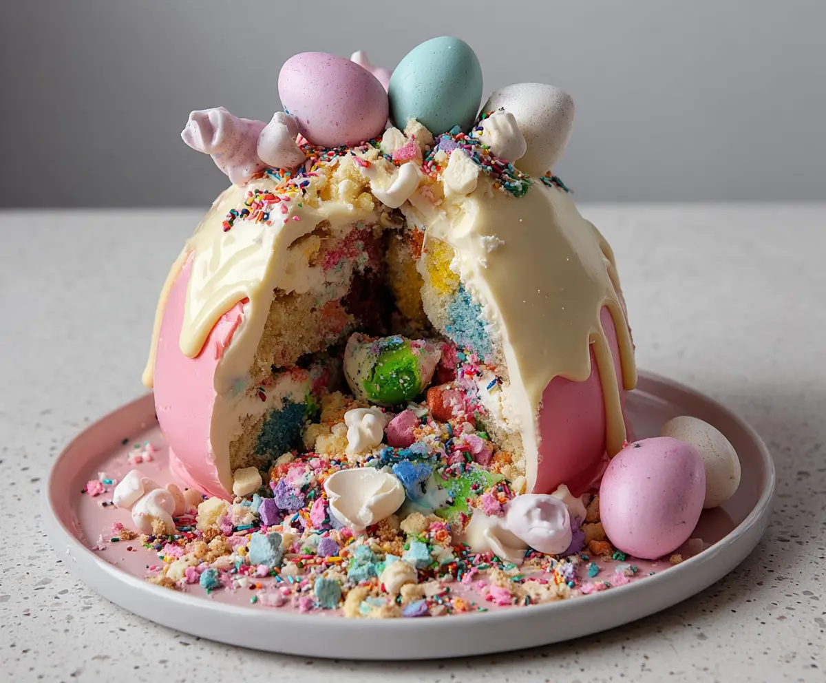 This Epic Easter Egg Smash Cake is a fun and festive treat! It’s packed with colorful candy and chocolate eggs, perfect for celebrating the holiday.