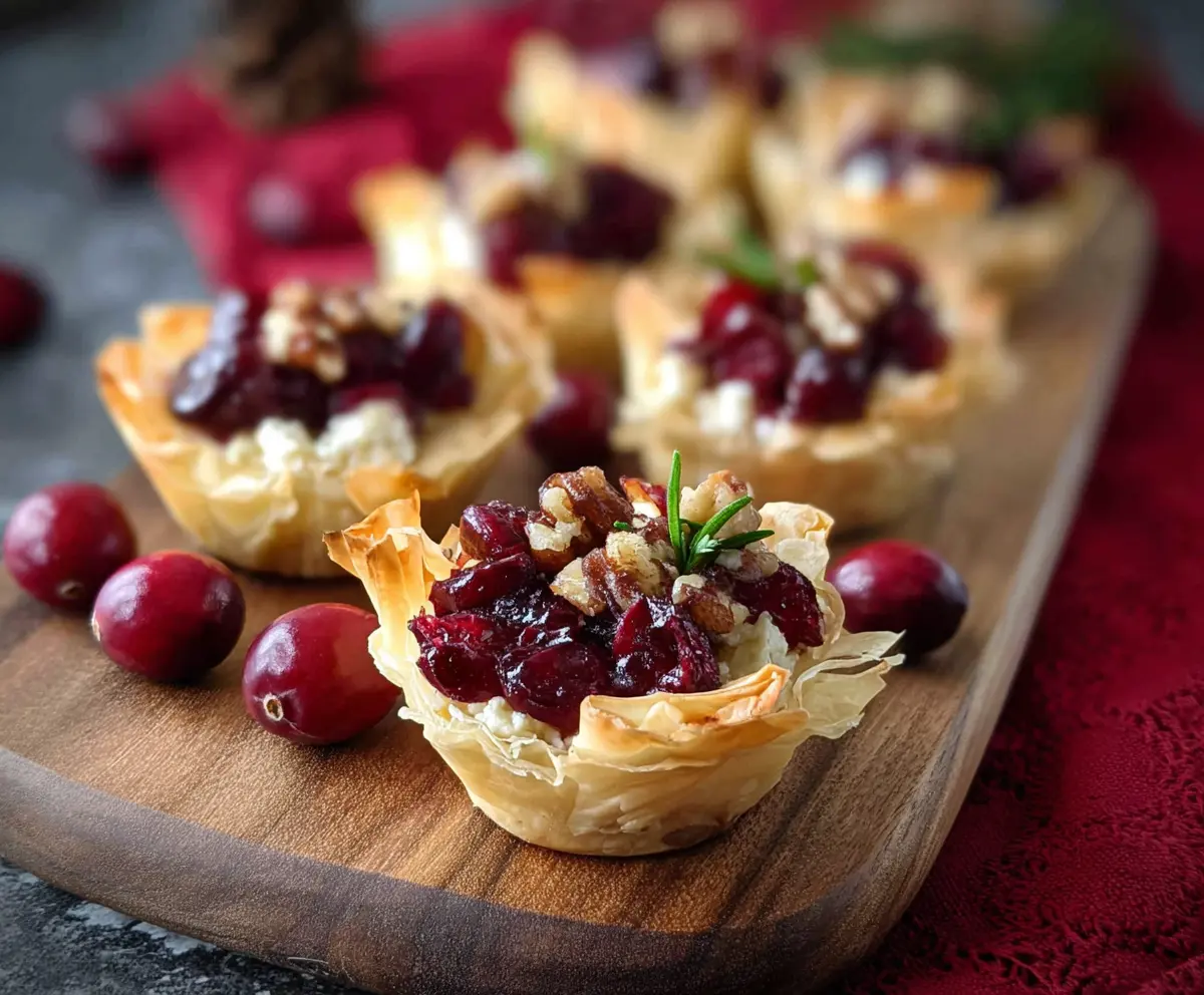 These Goat Cheese Cranberry Phyllo Cups are a delightful treat! With crispy phyllo pastry filled with creamy goat cheese and sweet-tart cranberries, they’re perfect for parties.
