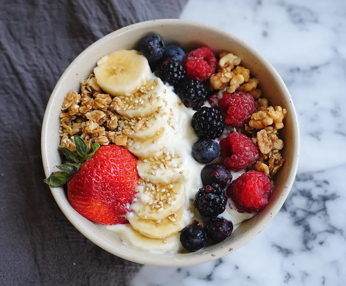 Greek Yogurt: This is the star of your bowl! Regular or Greek yogurt works well, but for a creamier taste, I recommend full-fat Greek yogurt. If you’re dairy-free, try coconut or almond yogurt instead.