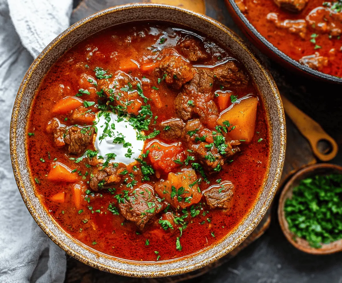 Hungarian Goulash is a tasty stew filled with tender meat, peppers, and rich spices. It’s perfect for warming you up on chilly days!