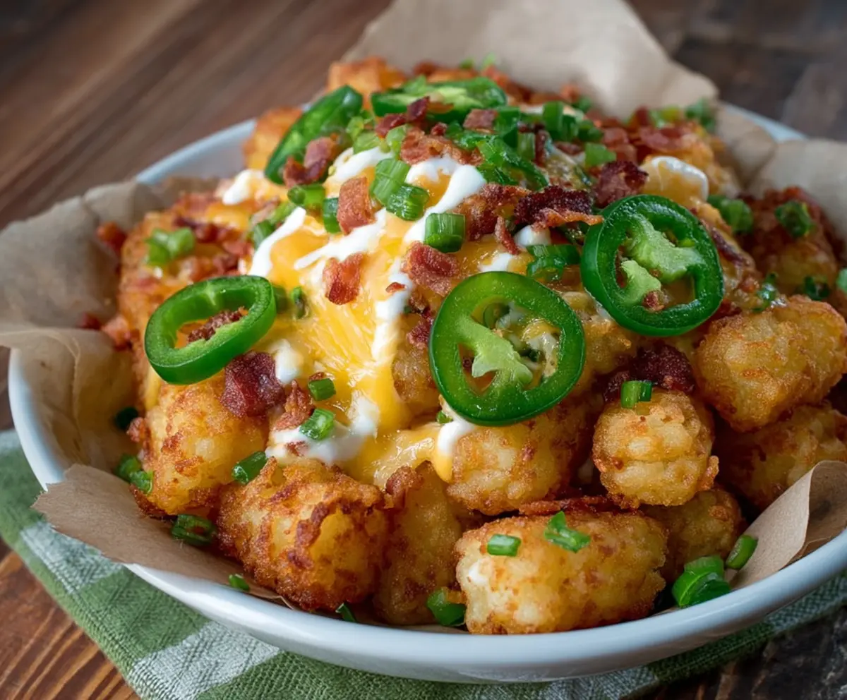 Get ready for a fun snack with these Jalapeno Popper Tater Tots! They mix crispy tater tots with creamy cheese and a spicy kick from jalapenos. Perfect for sharing (or not!).