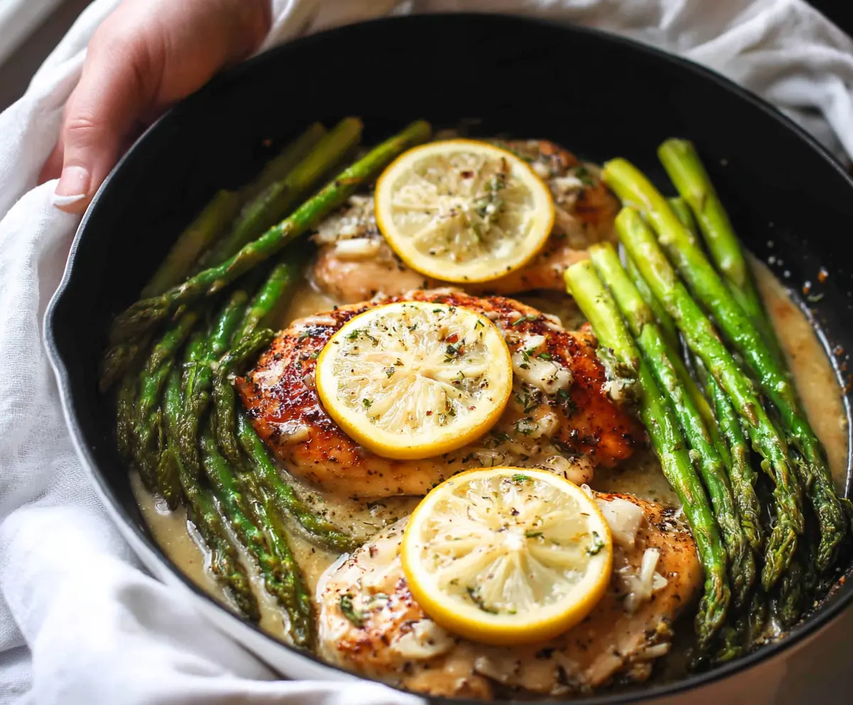 This Lemon Chicken with Asparagus is a bright and tasty dish! Juicy chicken is cooked with fresh asparagus and zesty lemon for a meal that feels light and refreshing.