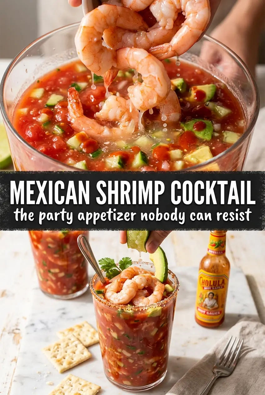 Mexican shrimp cocktail lands with that cold, crisp, saucy bite that keeps people standing at the counter for “just one more spoonful.” The shrimp stay plump, the tomato-lime base tastes bright instead of heavy, and the cucumber and avocado give each bite a cool, clean finish that makes the whole bowl feel fresh, not rich.