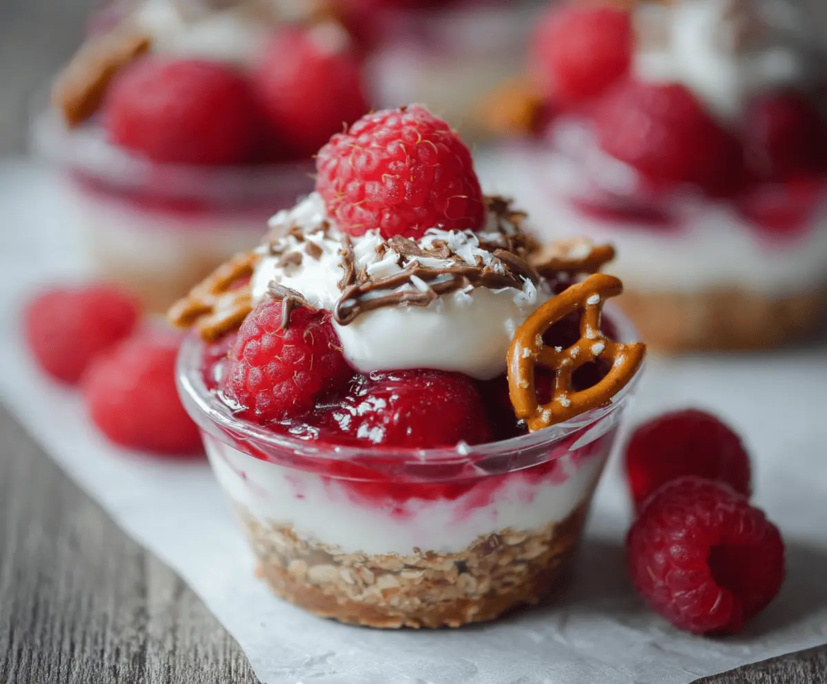 Delicious No-Bake Raspberry Pretzel Cups with fresh berries and crunchy pretzels