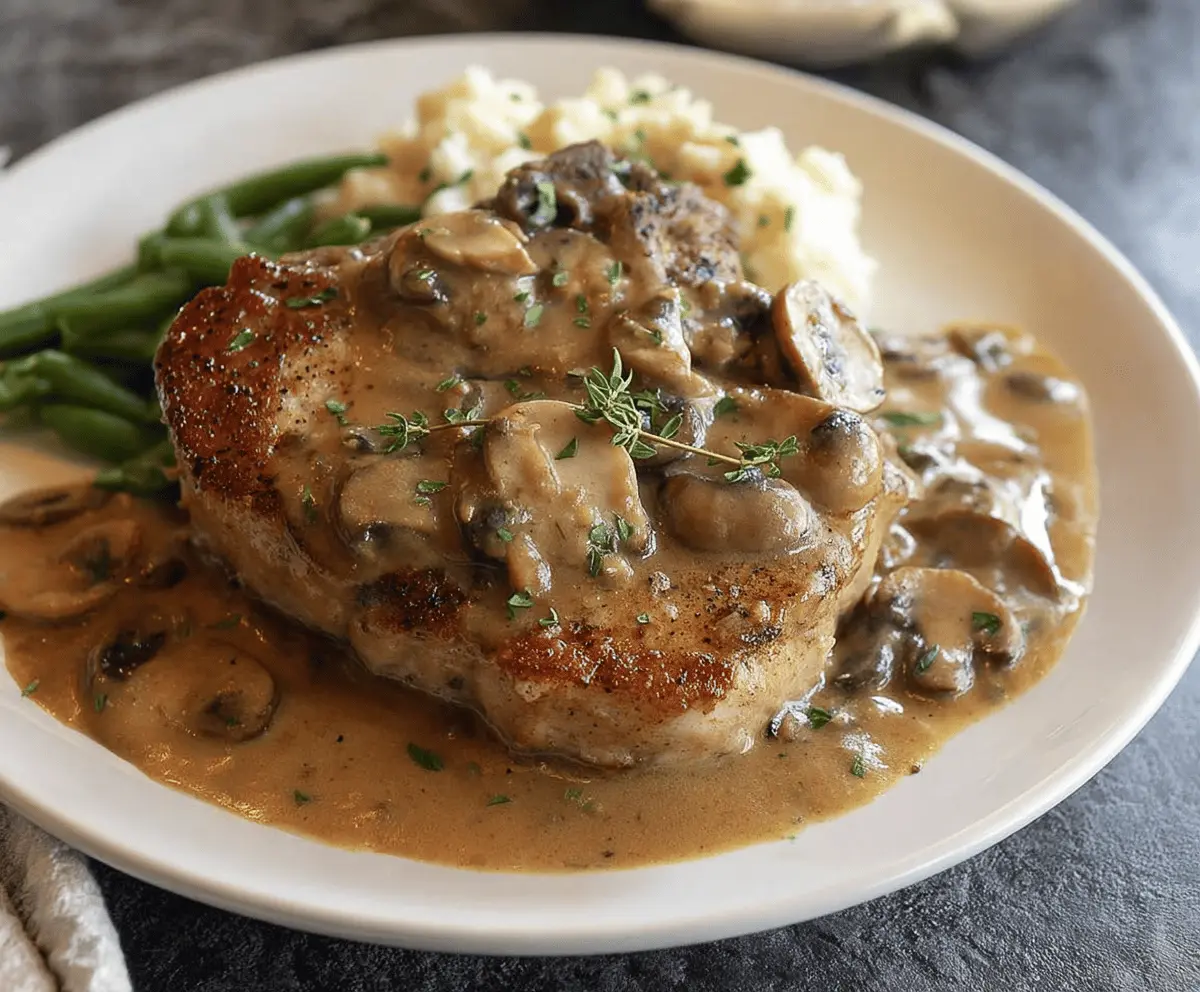 These juicy pork chops topped with creamy mushroom gravy are a comfort food dream. The mushrooms add a rich flavor that makes every bite special!
