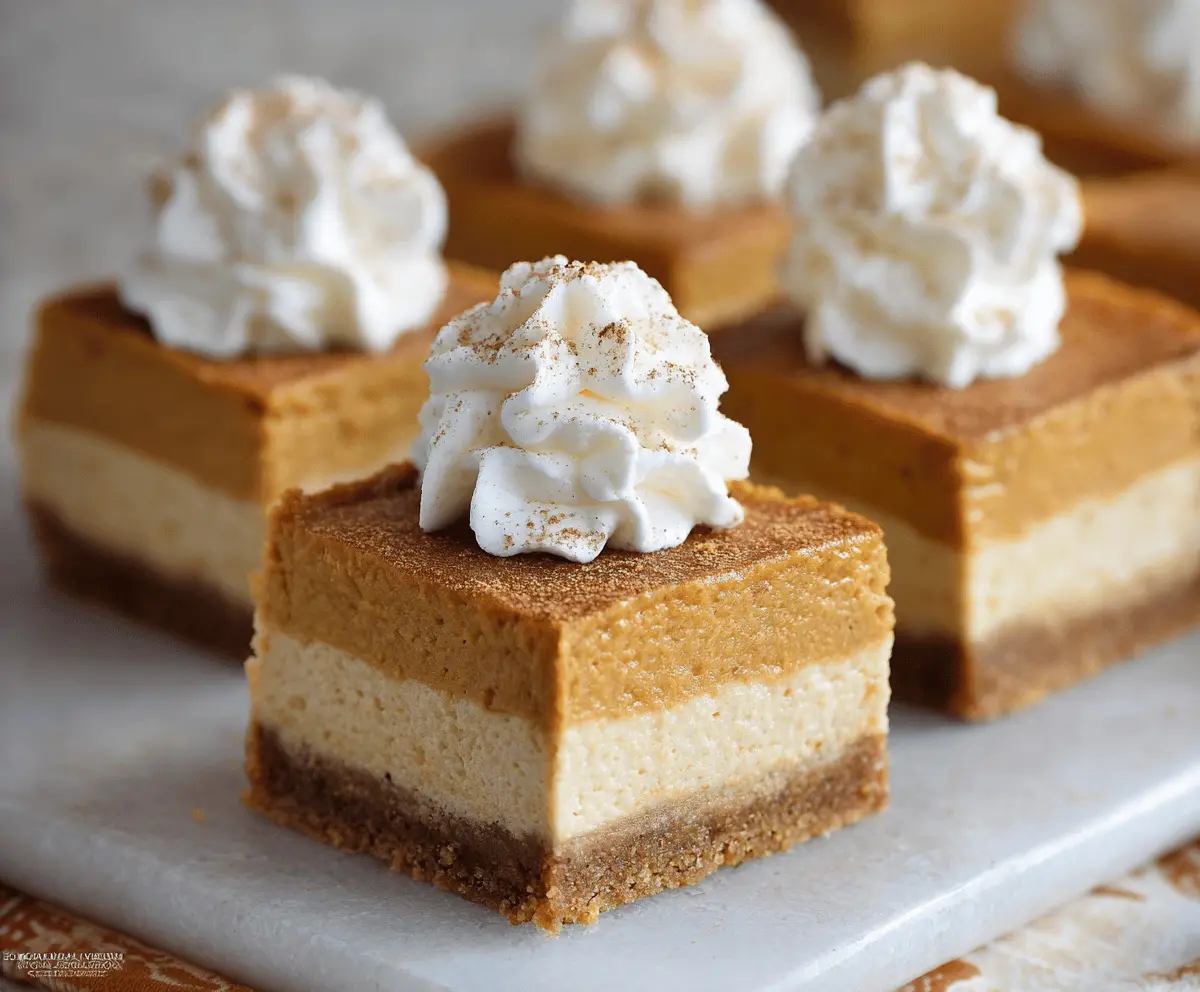 To serve, add a dollop of whipped cream on top of each bar and sprinkle with a little ground cinnamon or pumpkin pie spice if desired.
