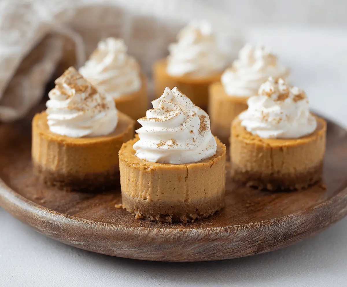 Before serving, top each mini cheesecake with a generous swirl of whipped cream and a dusting of ground cinnamon or pumpkin pie spice. Now, they’re ready to be enjoyed! Perfect for any fall gathering or simply to satisfy your pumpkin craving!
