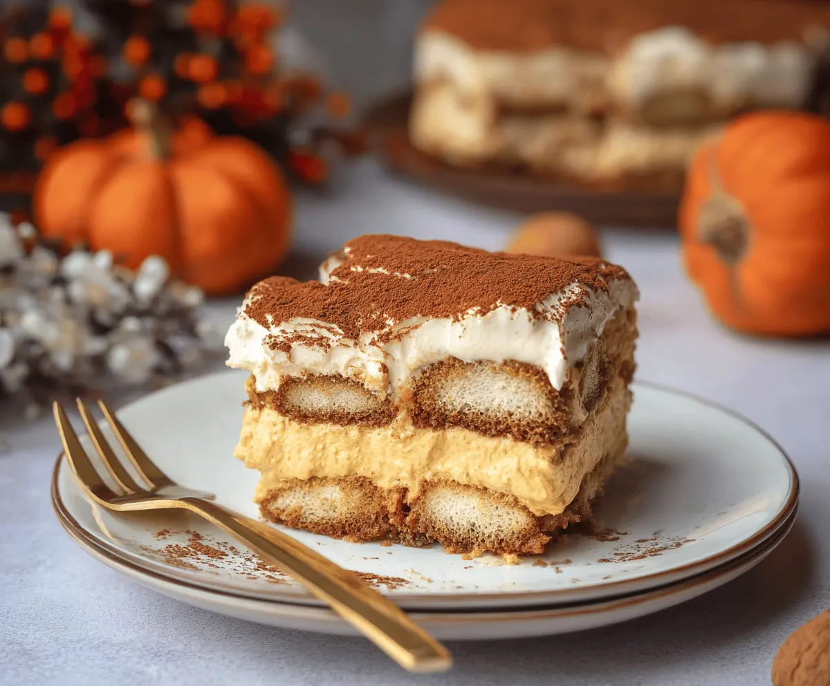 This layered pumpkin tiramisu beautifully combines creamy pumpkin flavors with coffee-soaked ladyfingers, topped off with a cocoa dusting for that perfect festive treat. Happy indulging! 🎃