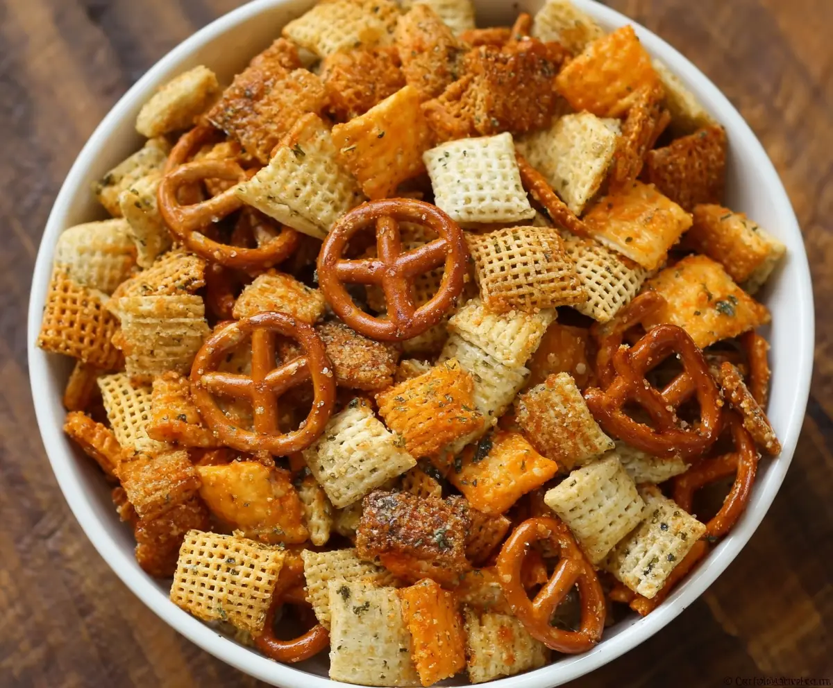Ranch Chex Mix is a fun and tasty snack that’s perfect for munching! It’s made with crunchy Chex cereal, nuts, pretzels, and coated in a zesty ranch seasoning.
