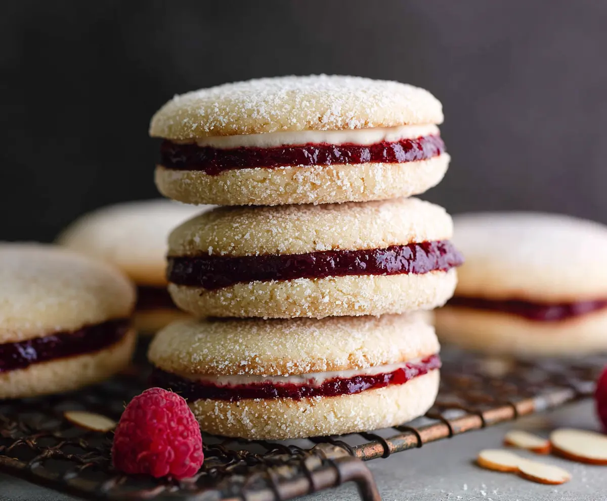 These delicate almond cookies sandwich a luscious layer of raspberry jam, creating a delightful balance of nutty and fruity flavors wrapped in powdery sweetness. Happy baking!