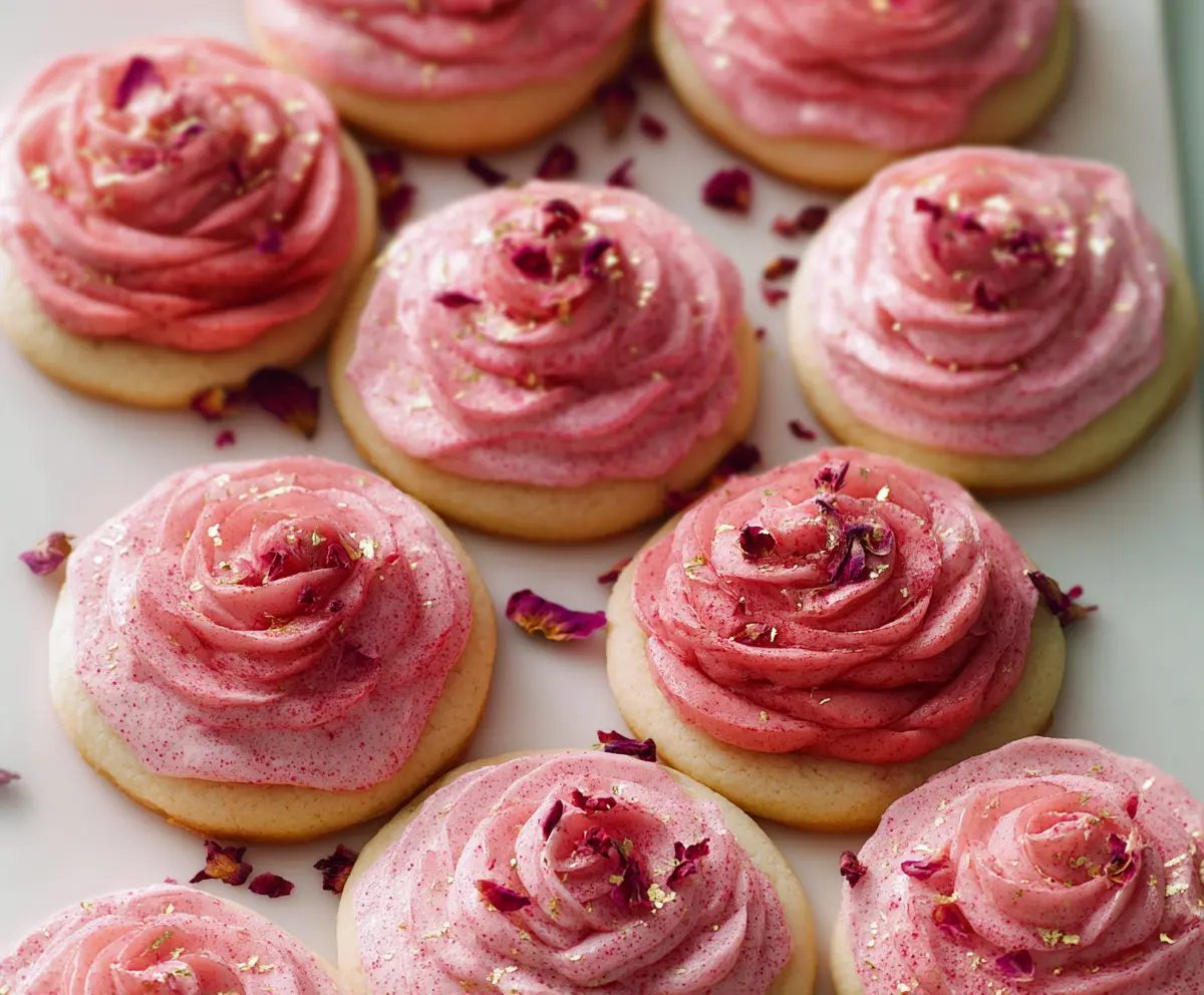 Finish off by gently placing a few dried edible rose petals on each cookie for a beautiful presentation. Allow the frosting to set slightly before serving.