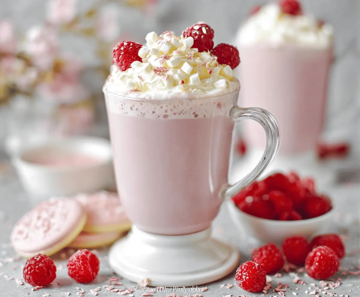 Raspberry White Hot Chocolate is a fun and sweet drink that warms your heart! It blends smooth white chocolate with a burst of fresh raspberry flavor—just perfect for chilly days!