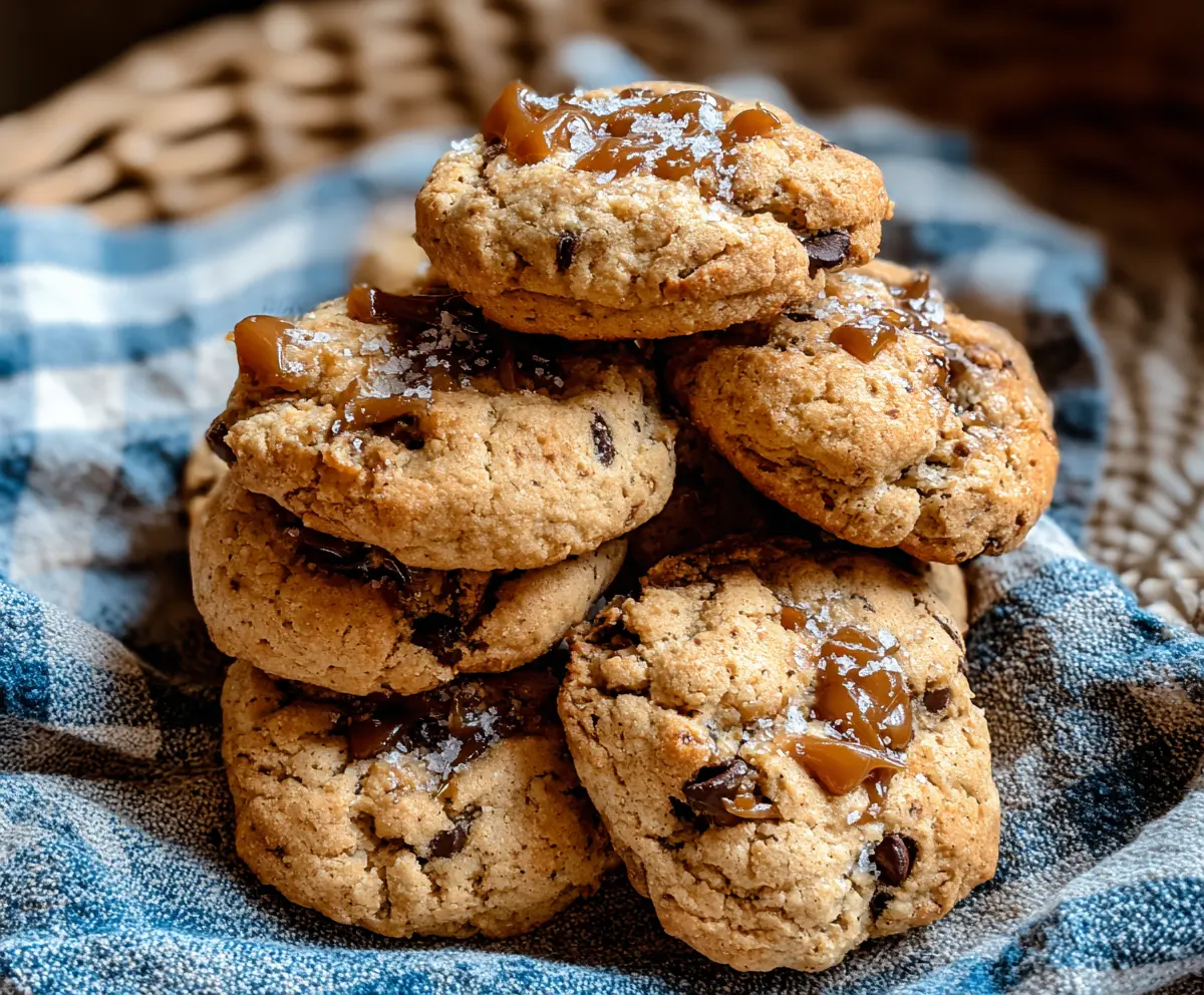 These Salted Caramel Sourdough Discard Cookies are a tasty treat made with leftover sourdough starter. They combine a soft, chewy texture with sweet caramel and just the right touch of salt.