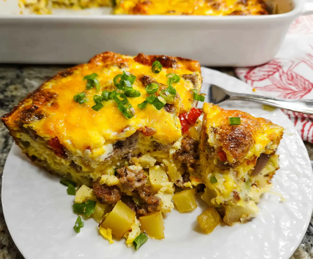 This delicious breakfast casserole is packed with sausage, eggs, and tender potatoes. It’s the perfect way to start your day, and it smells amazing while baking!