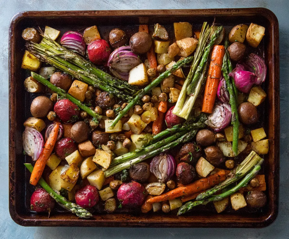 This dish is all about vibrant spring veggies roasted to perfection on one pan! Think crunchy carrots, bright asparagus, and sweet bell peppers, all mixed with olive oil and herbs.