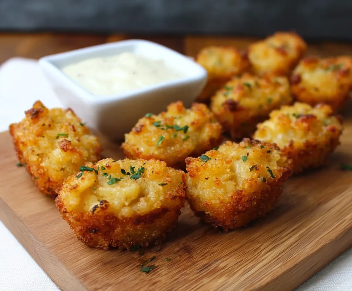 When the bites are crispy and golden, remove them using a slotted spoon and let them drain on paper towels. Serve them hot with your favorite dipping sauce, like ranch or spicy mayo, and feel free to garnish with chopped herbs if you’d like.