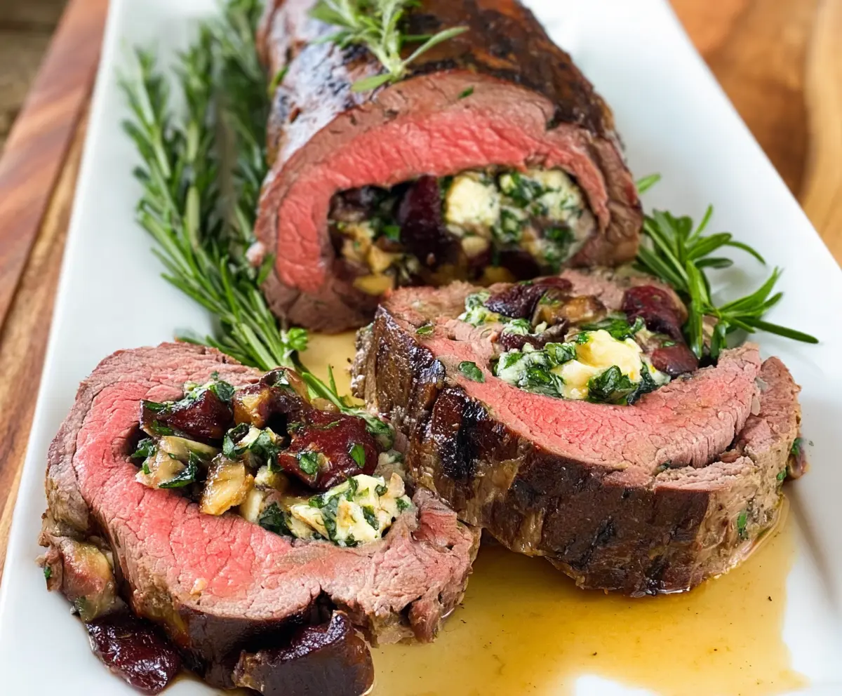 This stuffed beef tenderloin is a showstopper! It features juicy meat filled with delicious goodies like spinach and cheese, making every bite a delight.