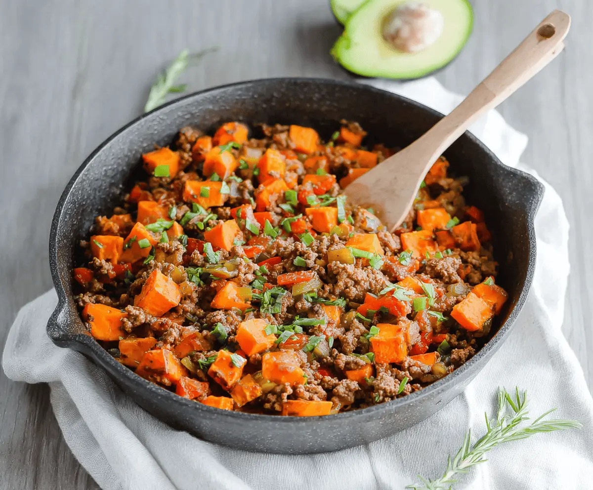 This Sweet Potato and Ground Beef Skillet is a hearty, one-pan dish that’s full of flavor! The sweet potatoes add a nice touch of sweetness, while the beef brings a savory bite.