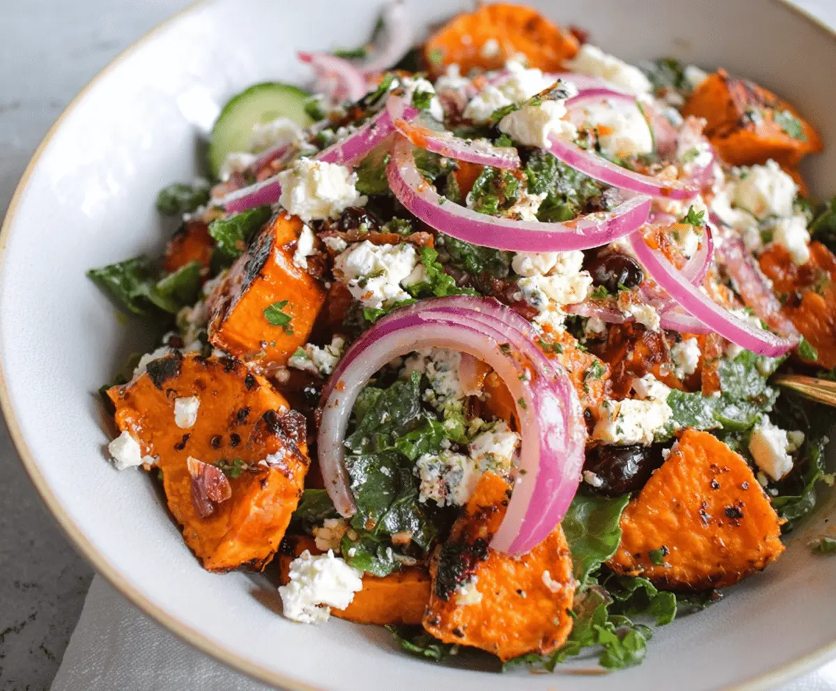 This Sweet Potato Greek Salad is a colorful mix of sweet potatoes, crunchy veggies, and creamy feta cheese, bringing yummy flavors to your plate! It’s fresh, healthy, and just perfect for any meal.