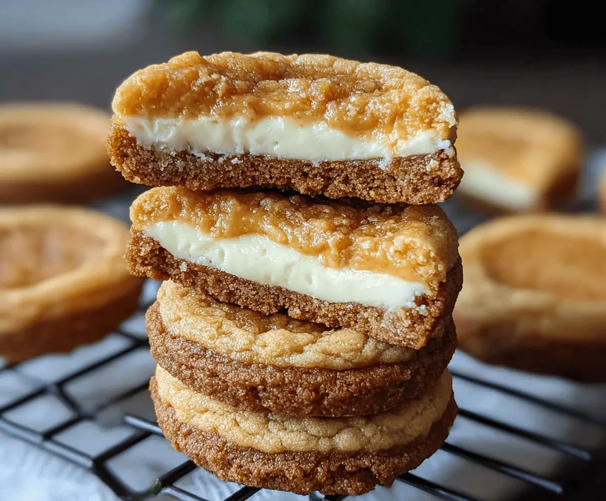 Once your cookies have cooled completely, it’s time to assemble! Take one cookie and spread a generous dollop of cheesecake filling onto the flat side. Place another cookie on top, Gently press them together to create a delicious sandwich. If you’re feeling fancy, you can use a piping bag to add the filling for a nice touch!