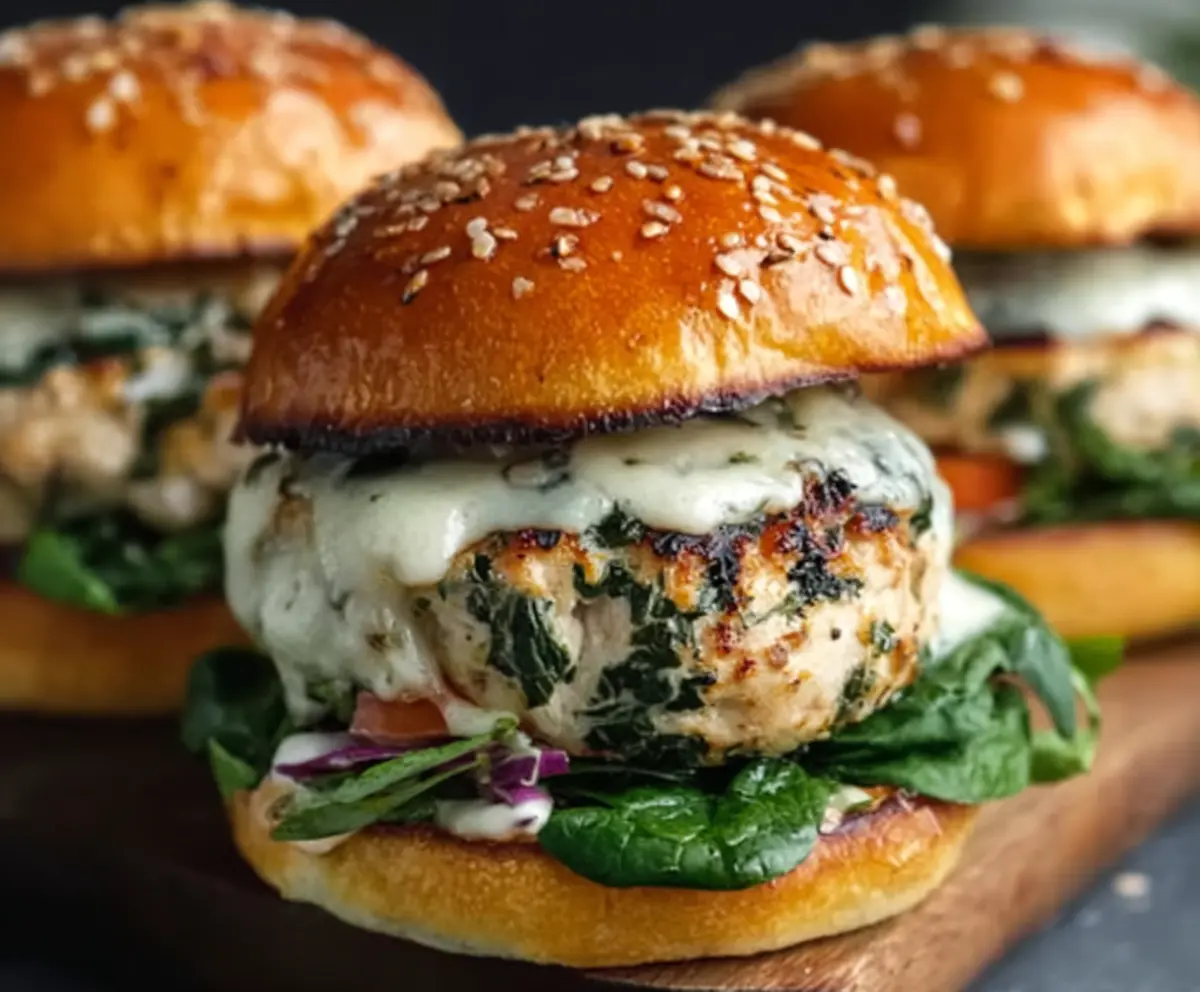 Your White Cheddar Spinach Chicken Burgers are ready to go! Serve them immediately with your favorite sides like fries or a fresh salad. Enjoy every juicy bite!