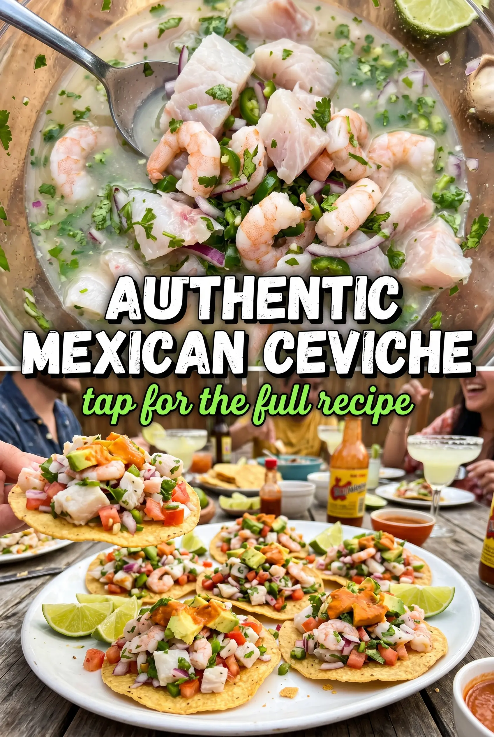 For the cleanest texture, keep the fish fully submerged and stir only a few times during the 30 minutes of marinating so the pieces stay intact. Store covered in the refrigerator up to 1 day, but note the avocado softens quickly; freezing is not recommended. For a dairy-free swap, this recipe is already dairy-free—just use gluten-free tostadas/chips if needed.